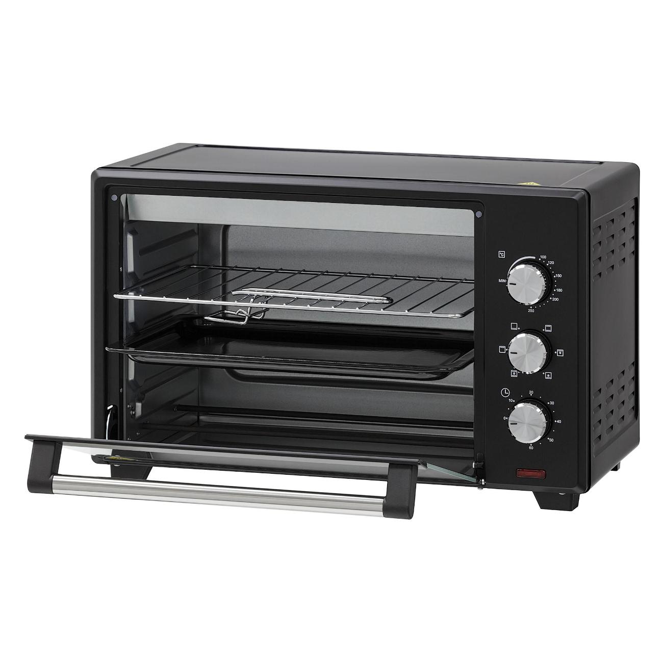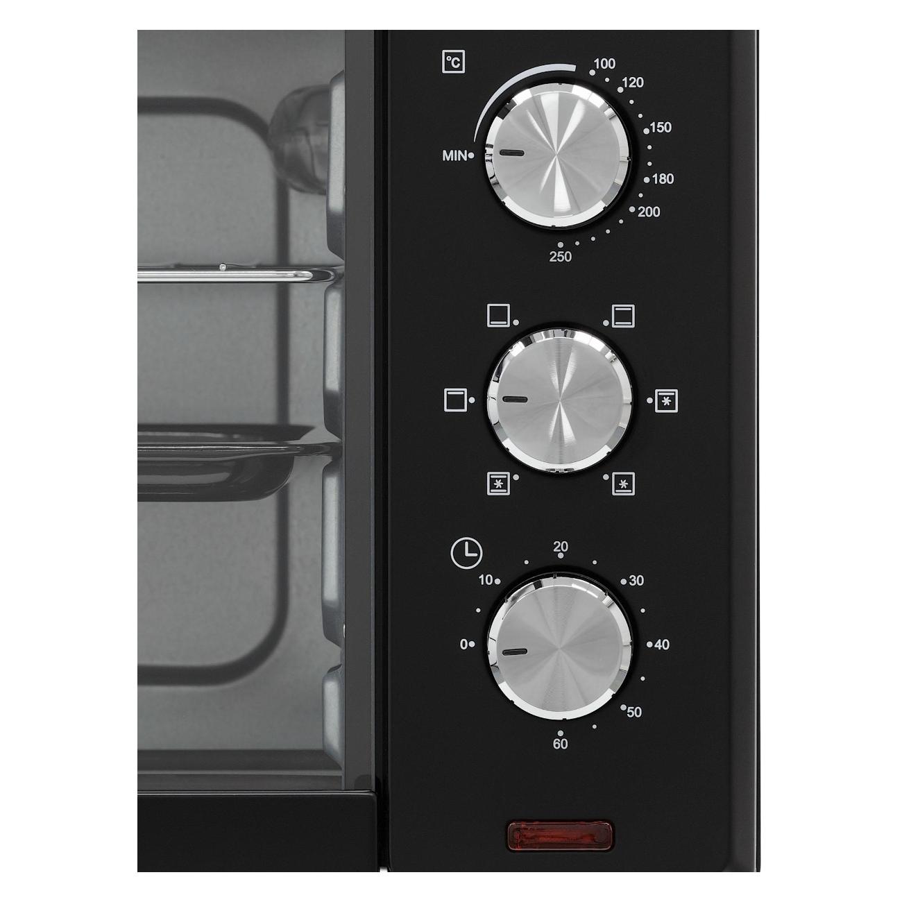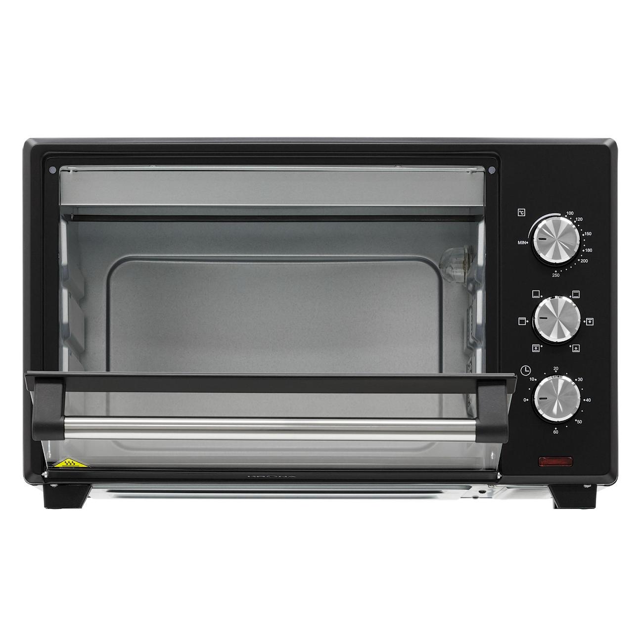 Большой объем. Противень с ручкой в комплекте. Плавная регулировка температуры. 6 режимов работы с конвекцией.