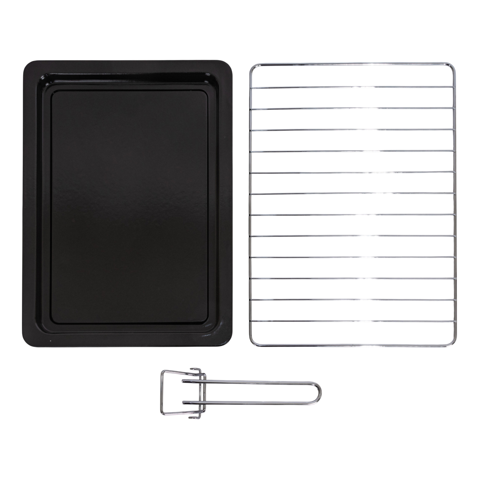 электропечь, металлическая решетка, плоский противень, круглая форма для пиццы, ухват для противня, вертел, ухват для вертела, инструкция на русском языке