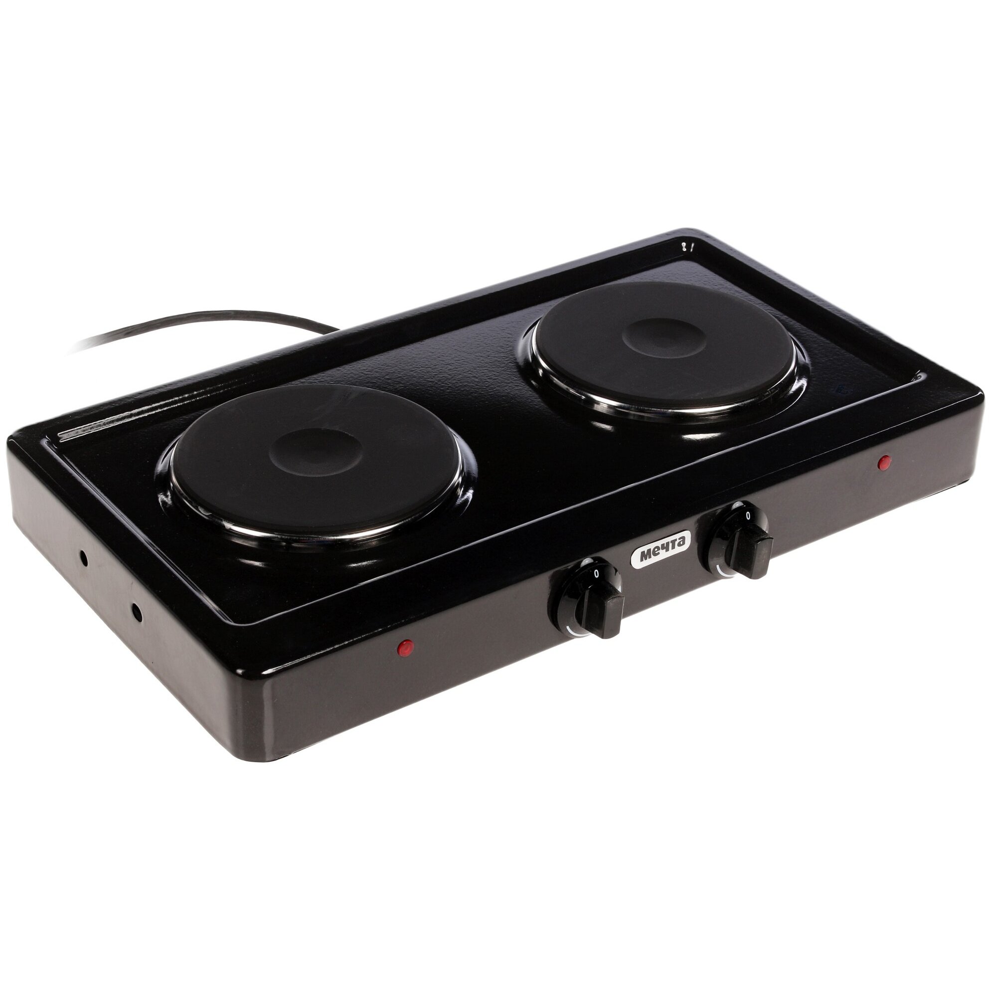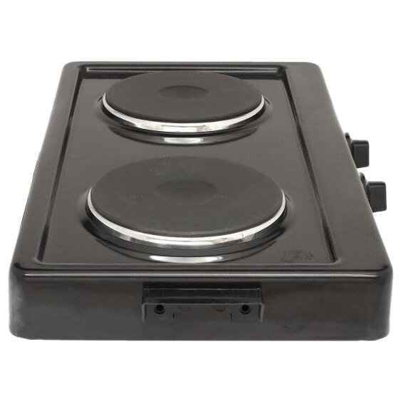 тип конфорок: чугунные; мощность каждой конфорки: 1 кВт, диаметр 14,5 см; бесступенчатое регулирование мощности; индикация включенного состояния электроконфорок; опорные ножки плитки оборудованы вкладышами противоскольжения; стеклоэмалевое покрытие; вес 4,5 кг