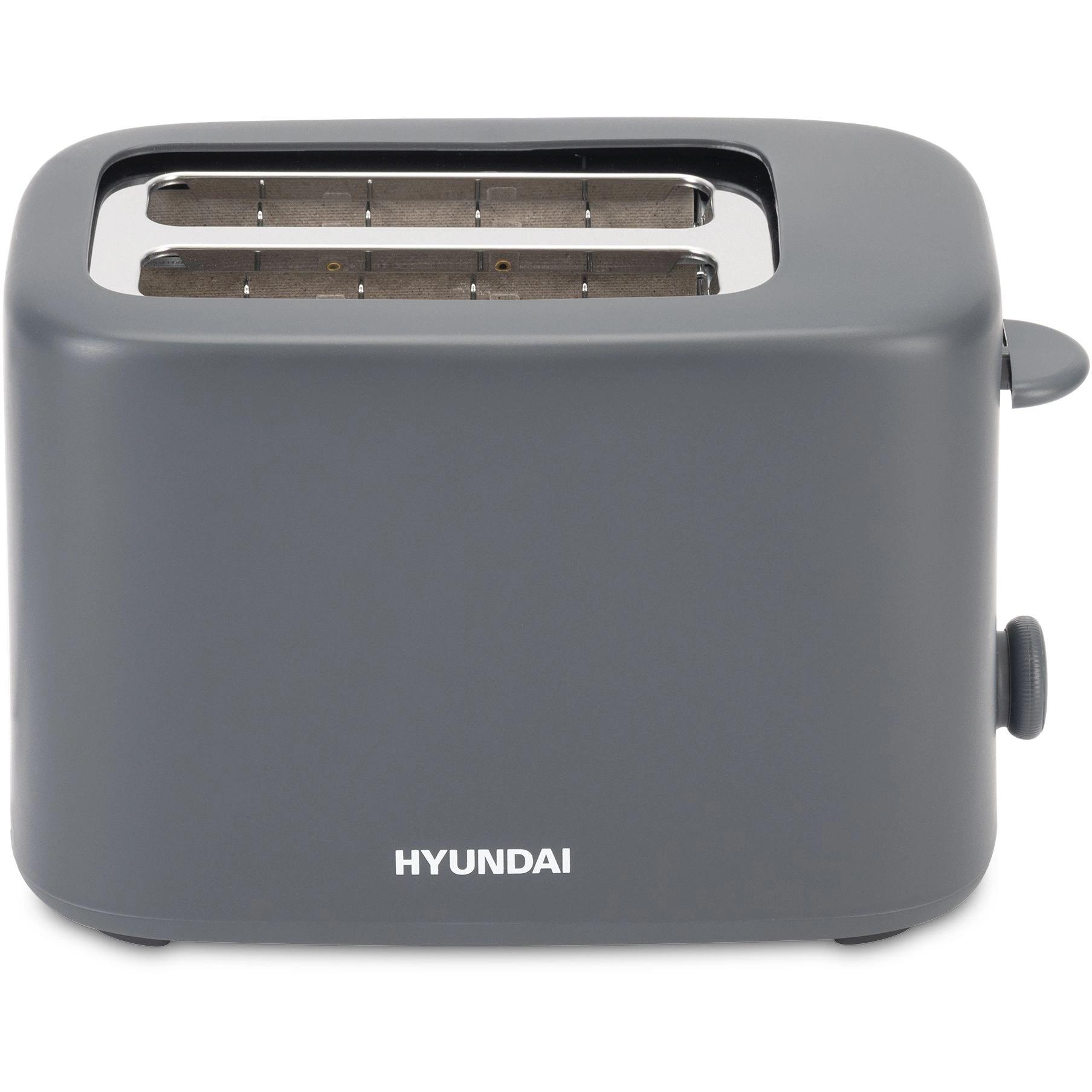 Компактный тостер со стандартными слотами для двух тостов, торцевое управление, трендовый серый цвет. Только тостер, все что нужно.