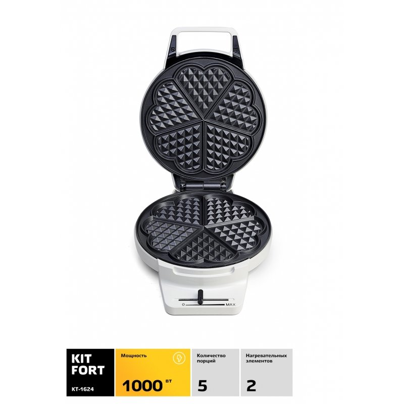 - БрэндKITFORTМодельКТ-1624Мощность1000 ВтТип управлениямеханическоеАнтипригарное покрытиедаФорма нагревательных частейвафлиФормы для готовкипластины для вафельКоличество отделений в пластине для вафель5