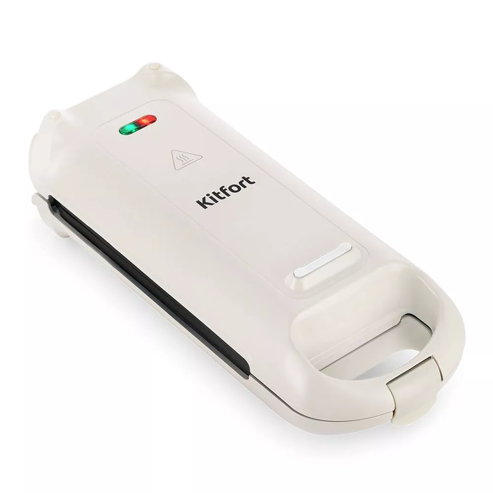 Электрическая вафельница Kitfort КТ-1690 имеет корпус, выполненный из прочного термоустойчивого пластика. На верхней поверхности вафельницы нанесено изображение с предупреждением о высокой температуре, чтобы избежать возможных ожогов.