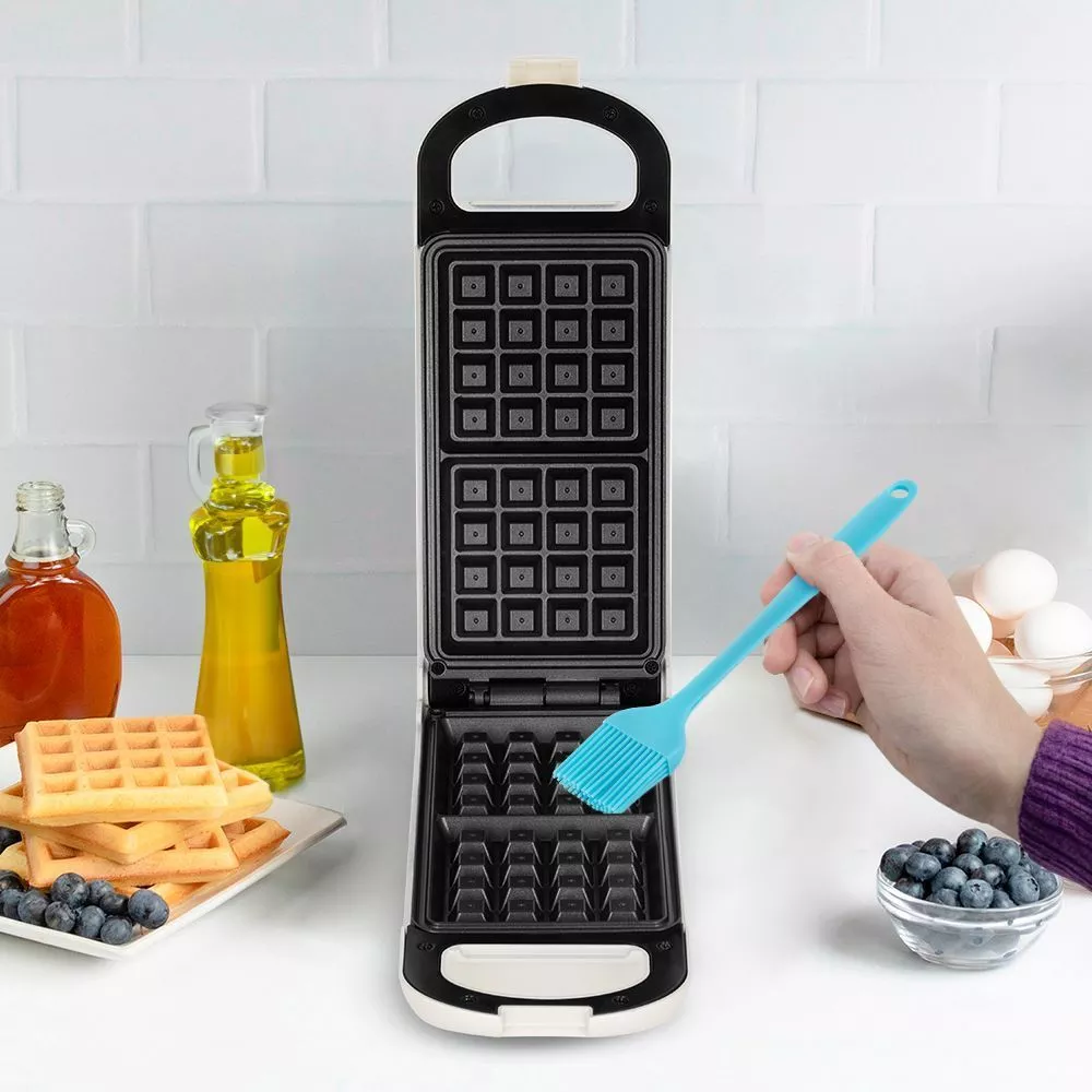 На формы вафельницы нанесено антипригарное покрытие. А также в комплекте с вафельницей идёт кисточка, которая поможет вам равномерно распределить масло по поверхности формы, сократив его расход и обеспечивая ещё более лёгкое приготовление вафель.