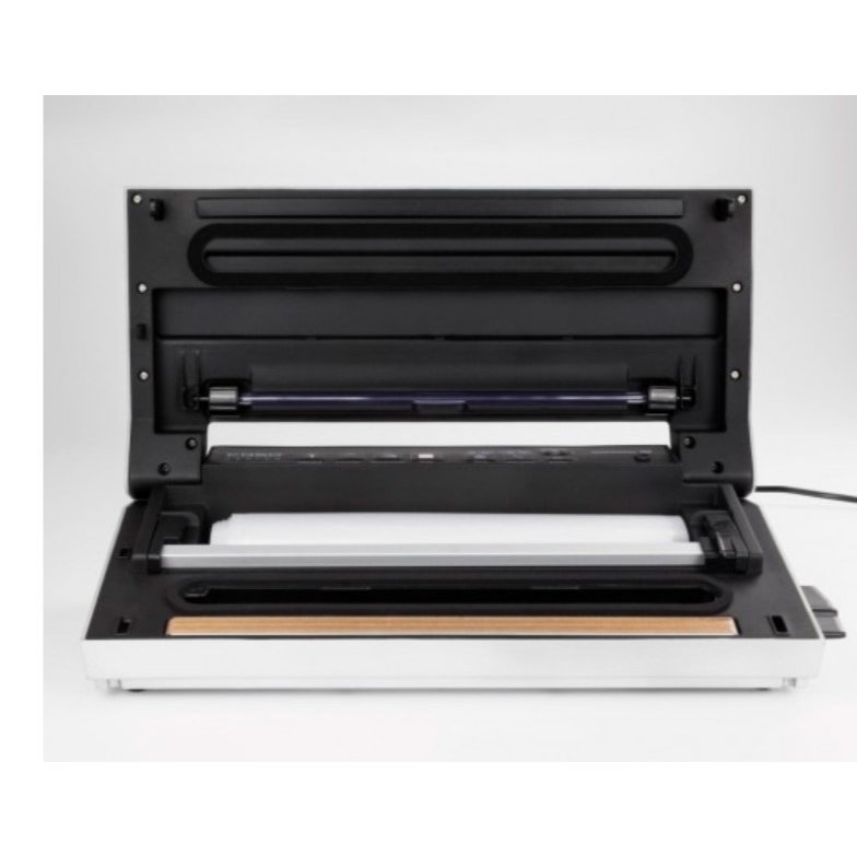 Благодаря насосу мощностью в 160 Вт воздух откачивается со скоростью 15 литров в минуту, что позволяет качественно упаковывать продукты. Сварная планка рассчитана на пакеты и рулоны шириной до 30 см. Пакет запаивается качественным двойным сварным швом. Для удобного нарезания пленки предусмотрен встроенный резак.